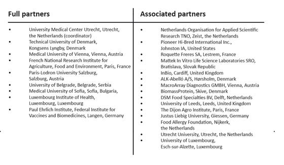 The ALLPreT consortium, coordinated by Kitty Verhoeckx, PhD (assistant professor food allergy, Department of Dermatology & Allergology, University Medical Center Utrecht), arises from the EU COST Action ImpARAS (Improved Allergenicity Risk Assessment Strategy), which ran from 2014-2018 and which was also coordinated by Kitty Verhoeckx. ALLPreT is a multidisciplinary collaboration of 9 full partners and 15 associated partners from universities, research institutes, hospitals, patient organizations and industry, located in 10 European countries and the United States (see table).