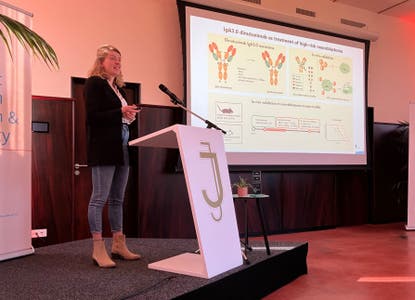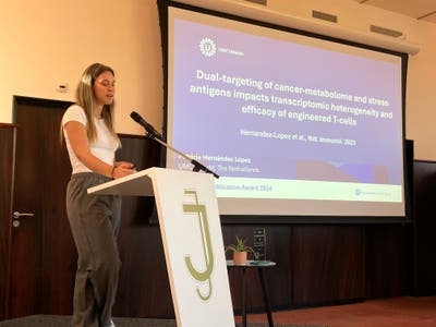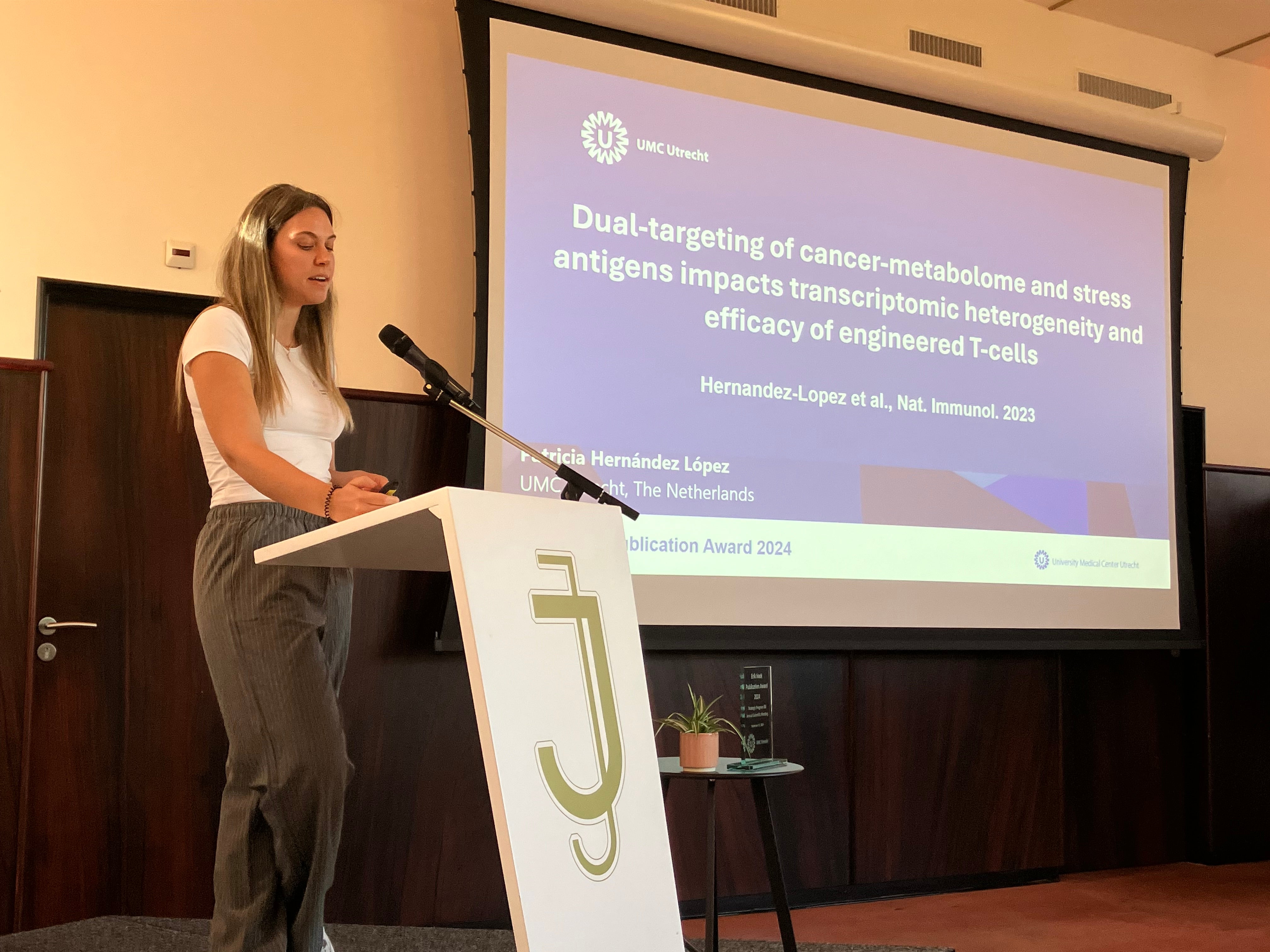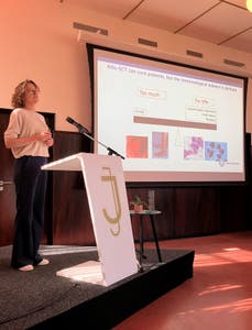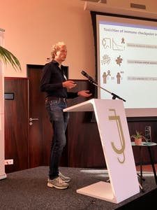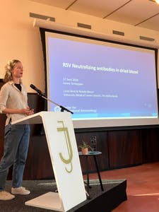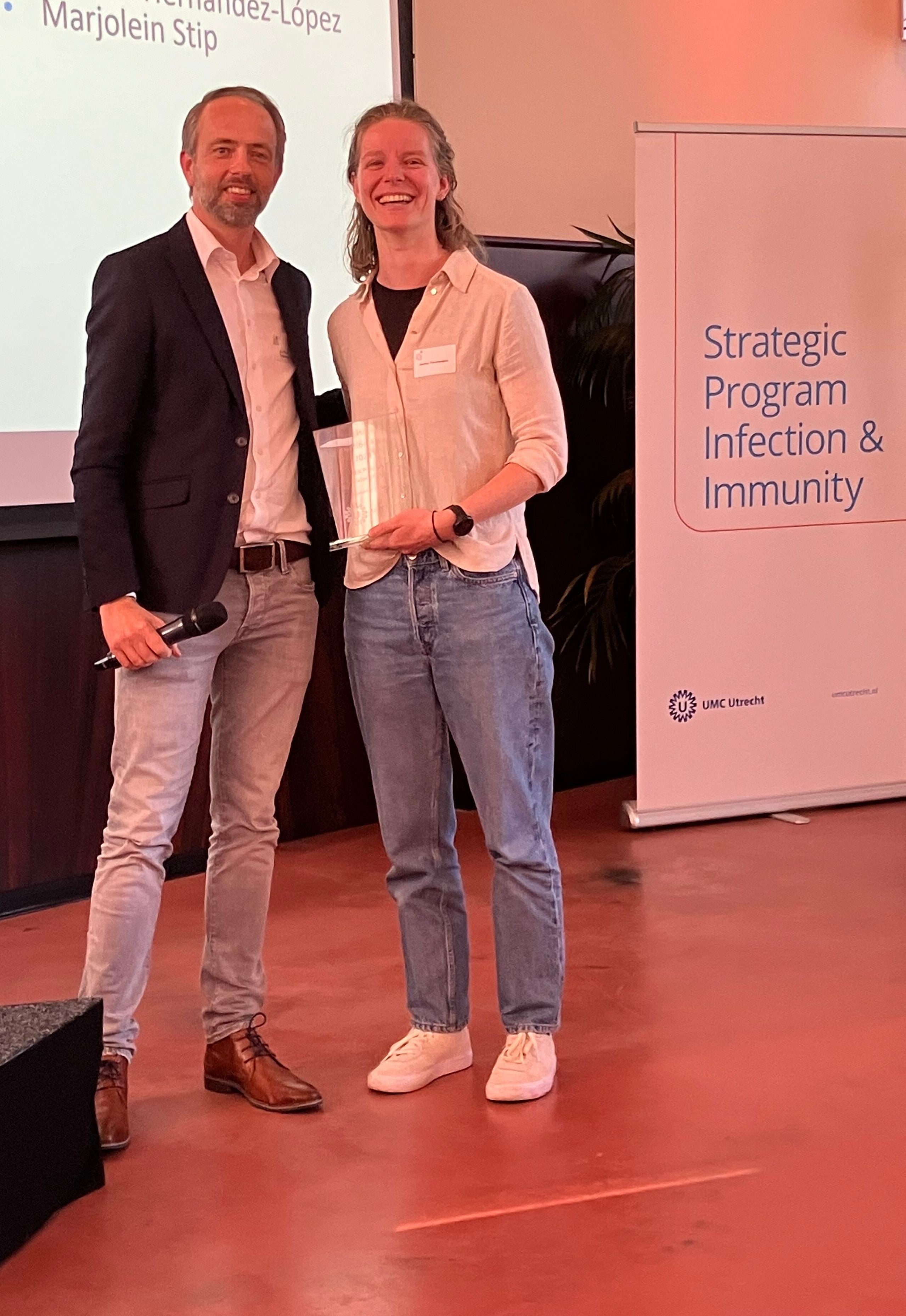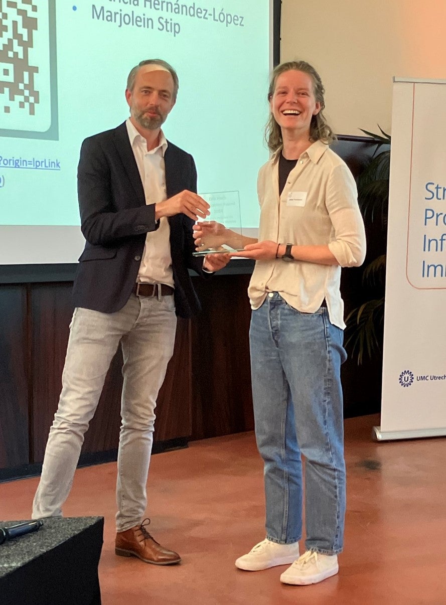 As usual, the strategic program I&I also held its pitch competition for the best I&I publication 2024 by our PhD candidates as first author. The award winner received 750 euro free to spend. Four candidates – Mick van Eijs, Jonne Terstappen, Patricia Hernández López and Marjolein Stip - were selected by an I&I reviewing committee to present their publication at the meeting. After a live audience voting, the award was won by Jonne Terstappen (Center for Translational immunology) for her 2023 paper on the development of a simple blood test for assessment of neutralizing antibodies against the RS-virus (Terstappen et al. Journal of Infectious Diseases 2024 Jul 25;230(1):e93-e101). Such a test would be most useful in resource-poor settings.