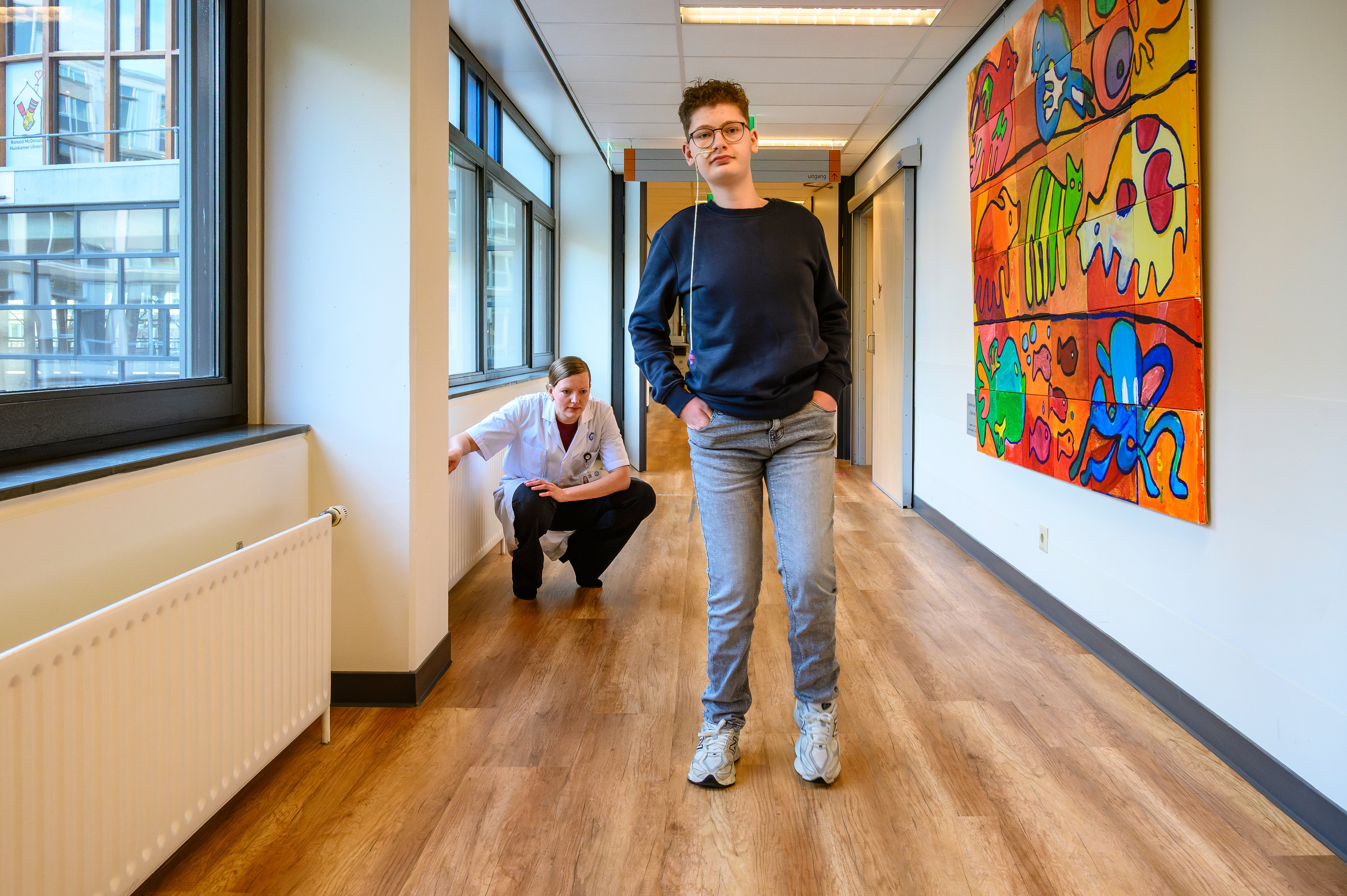 Dean is 14 jaar en heeft een zeldzame spierziekte: Selenon-gerelateerde myopathie. Daardoor is hij altijd moe en zit hij in een rolstoel. Toch wil hij, zoals ieder kind, graag meedoen in het dagelijks leven. Daarom komt hij één à twee keer per jaar het Spieren voor Spieren Kindercentrum in het Wilhelmina Kinderziekenhuis (WKZ). Hij ziet dan meerdere specialisten. De afspraken worden zoveel mogelijk op één dag gepland, zodat hij zo min mogelijk naar het WKZ hoeft te komen. Vader Kevin zegt: “Ze kennen ons hier goed. Er is een warm gevoel en we weten inmiddels wat we aan elkaar hebben.”