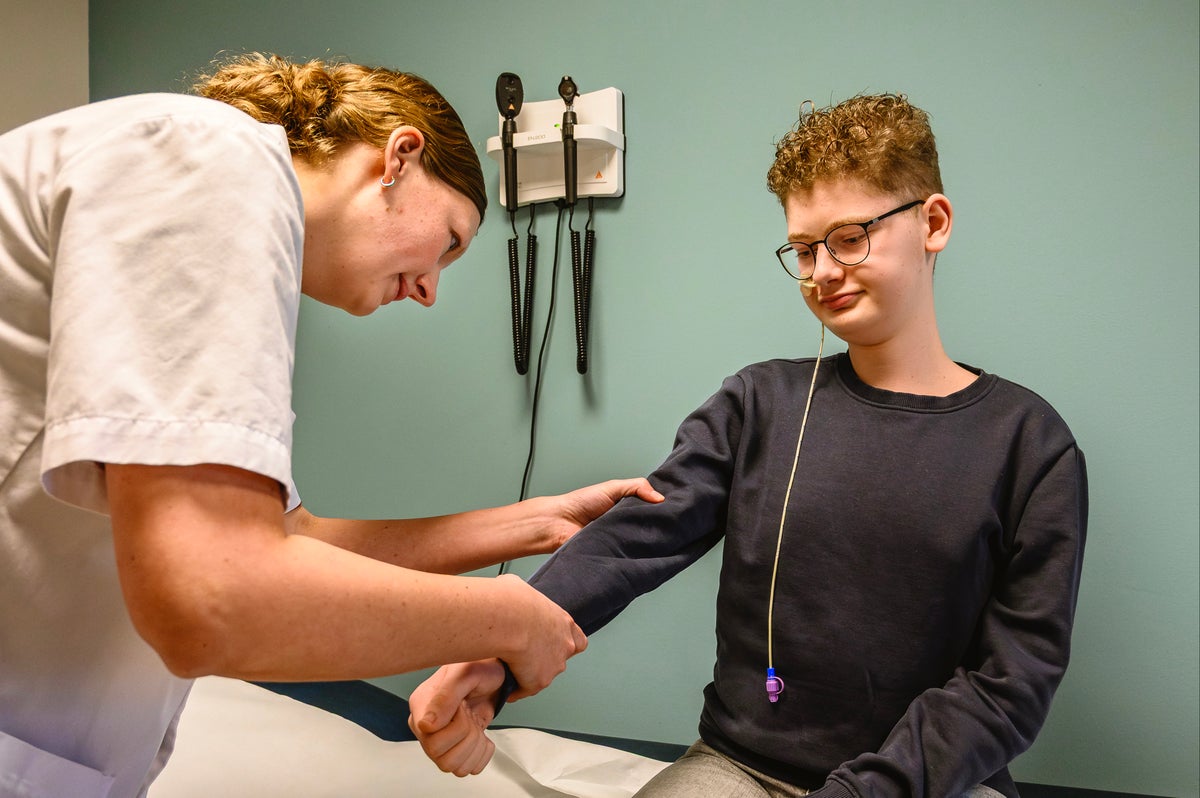 En andere specialisten die nodig zijn voor zijn ontwikkeling en gezondheid. "Ik hoef niet steeds weer naar het ziekenhuis voor aparte afspraken. Nu zie ik alle artsen en therapeuten op één dag. Ze komen allemaal naar mij toe. Dat is voor mij echt heel fijn en minder vermoeiend," zegt Dean.