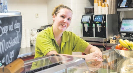 “Bij mij kunnen patiënten, bezoekers en medewerkers terecht voor een lekker broodje, soep of iets te drinken.” Dat vertelt Wendy Smit die de koffiecorner in de wachtruimte van de radiotherapie beheert. Hier komen patiënten die bestraald moeten worden. Vaak dagen achter elkaar. “Ik houd van kletsen en grappen maken, dus voor een praatje sta ik altijd open. Ook durf ik te vragen hoe het gaat met een patiënt. En soms maak ik een geintje met mensen waarvan ik weet dat het kan. Gelukkig kan ik wel een knop omzetten in mijn hoofd, want ik hoor helaas ook verhalen die absoluut niet leuk zijn. Desondanks is het hier, dat klinkt misschien raar, gezellig.”
