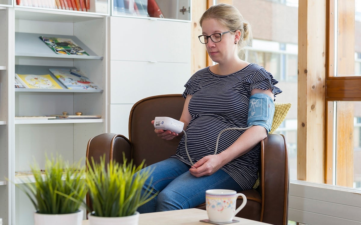 Daarnaast ontwikkelen we in het UMC Utrecht een nieuwe vorm van zorg. Door het inzetten van continue monitoring te verplaatsen naar de thuisomgeving. Hierbij draagt de patiënt eenzelfde draadloze sensor op de borst. Deze meet, vanuit huis, de vitale waarden, zoals de hartslag of de ademhaling. Van minuut tot minuut, 24 uur per dag, 7 dagen per week. Vanuit het ziekenhuis houden monitoringsverpleegkundigen deze waarden continu in de gaten. Ze bieden de patiënt begeleiding op afstand. En kunnen direct zorgprofessionals inschakelen wanneer de patiënt tóch achteruitgaat. Hierdoor kunnen patiënten straks ook in acute situaties veilig en comfortabel in hun eigen, vertrouwde omgeving herstellen.
