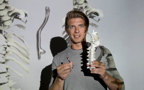 Moyo: “Doordat de wervels van deze jongen aan de voorzijde volledig zijn verdwenen was een versteviging aan de achterzijde alleen voor de lange termijn kansloos. Stabilisatie aan de voorkant leek onmogelijk doordat daar geen ruimte was voor gewone staven en schroeven. Dat was de reden om de nog niet gebaande route van een 3D- geprint implantaat in te slaan.” Koen Willemsen: “We zijn toen met een team van chirurgen en ingenieurs uit het UMC Utrecht aan de slag gegaan om een oplossing te vinden. Die vonden we door met een titanium 3D-printer een passende wervelkolom ondersteuning speciaal voor deze jongen te maken.”
