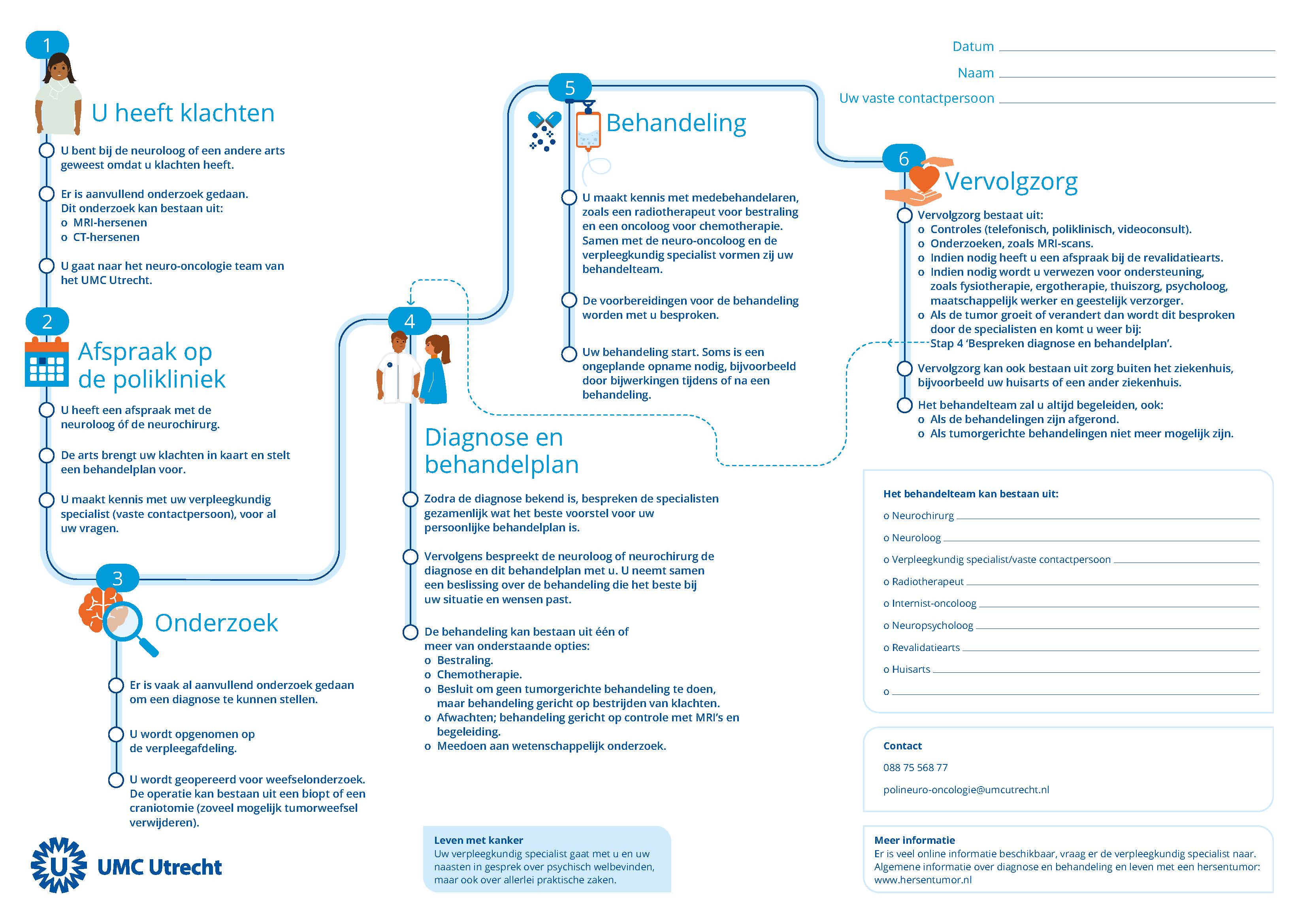 Hier vinden u en uw naasten informatie over het diagnose- en behandeltraject bij een hersentumor. Er is veel informatie beschikbaar waardoor het onmogelijk is om volledig te zijn. We hebben de belangrijkste informatie opgedeeld in de stappen van de routekaart.
