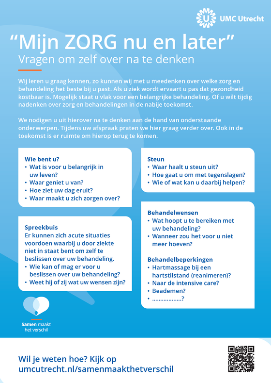 Mijn Zorg nu en later - vragen om zelf over na te denken