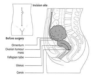 U wordt door de anesthesiemedewerkers naar de operatiekamer gebracht. Hier ziet u de gynaecologisch oncoloog en het hele operatieteam nog een keer voordat u onder narcose gaat en de operatie begint. Als u onder narcose bent maakt de gynaecologisch oncoloog een snede (incisie) in uw buik van het borstbeen tot het schaambeen. Zo kan hij/zij de hele buikholte goed overzien.