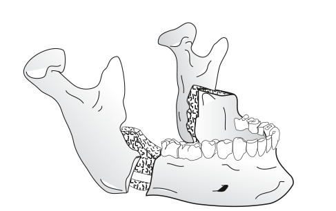 Bij een te kleine onderkaak wordt de onderkaak naar voren verplaatst. De onderkaak wordt daardoor verlengd. In figuur 1 ziet u hoe dat gedaan wordt. De botsnede wordt zo gelegd dat de botdelen na de operatie contact met elkaar blijven houden. Het deel met de tanden en kiezen wordt naar voren geschoven. Het achterste deel waaraan zich ook het kaakgewricht bevindt blijft op zijn plek staan. Op die manier ontstaat een langere kaak, zonder dat daar extra bot voor nodig is. In de ruimte tussen de botdelen groeit nieuw bot.