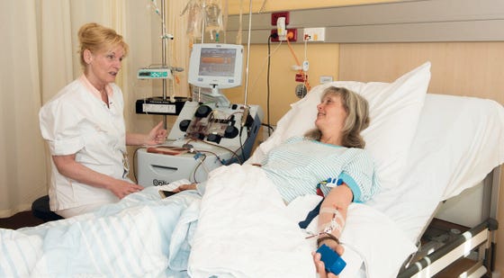 Op bijgaande foto ziet u de aferesemachine die in het UMC Utrecht wordt gebruikt.
