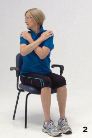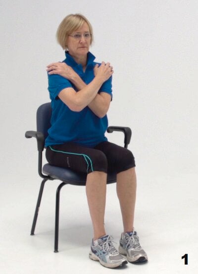 - Ga zitten op een stoel of op de rand van het bed en kruis uw armen voor de borst.