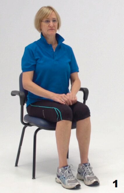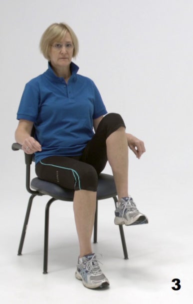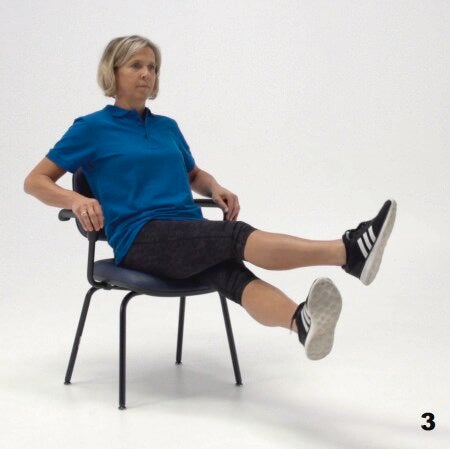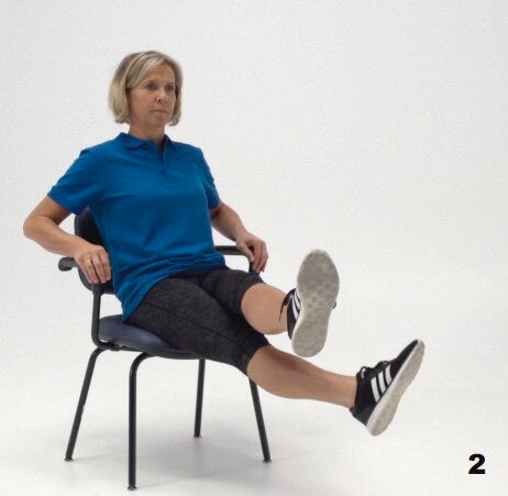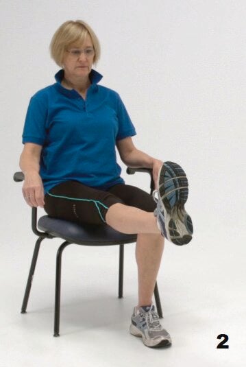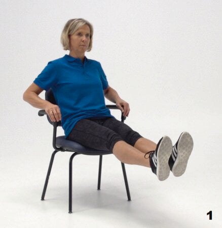 - Ga rechtop zitten in een stoel en strek beide benen.