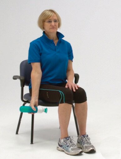 Maak deze oefening zwaarder door in beide handen een gewicht vast te houden (bijvoorbeeld een flesje water).