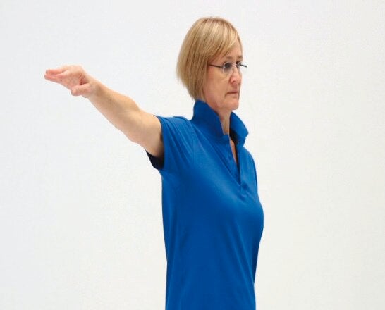 - Breng één of beide armen in een rechte lijn zijwaarts omhoog, zover als u kan.