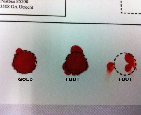 Als de cirkel niet goed gevuld is, kan het laboratorium de spiegel niet bepalen en/of is de uitslag niet betrouwbaar.