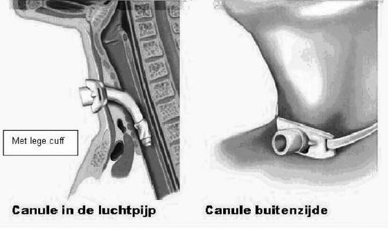 Praten met een tracheacanule is dus alleen mogelijk wanneer de cuff van de canule leeg is. De arts bepaalt wanneer de cuff leeg mag. In veel gevallen is het echter nodig dat de cuff de eerste dagen opgeblazen blijft.