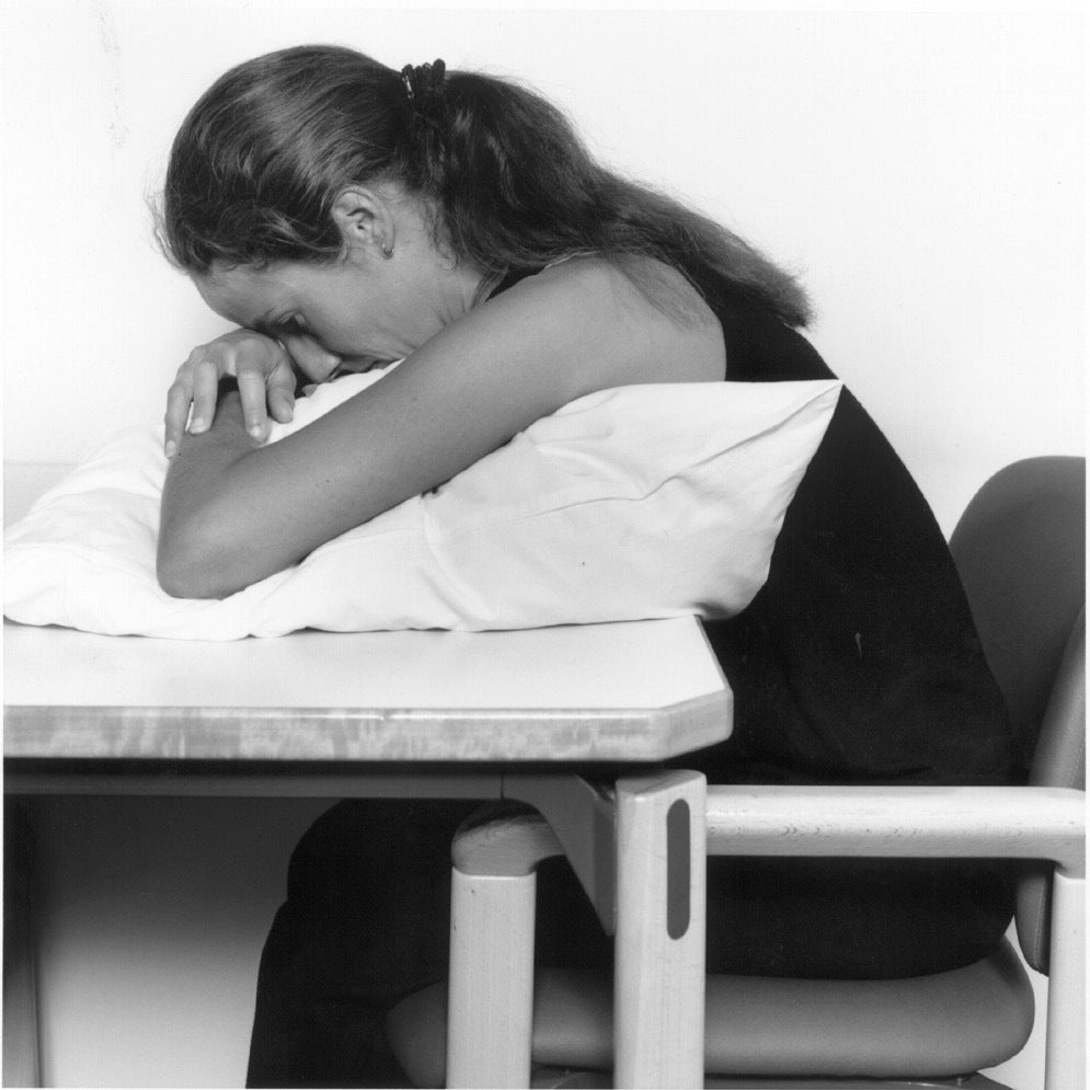 Foto 2: Zitten. Ondersteun uw hoofd op een kussen