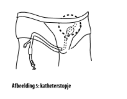 Let u er vooral ook op dat er geen knik in de slang zit en dat de katheter nergens trekt. De urine moet goed weg kunnen lopen, en de slang moet bij al uw bewegingen vrij blijven. Ook moet u nog alle bewegingen kunnen blijven maken.